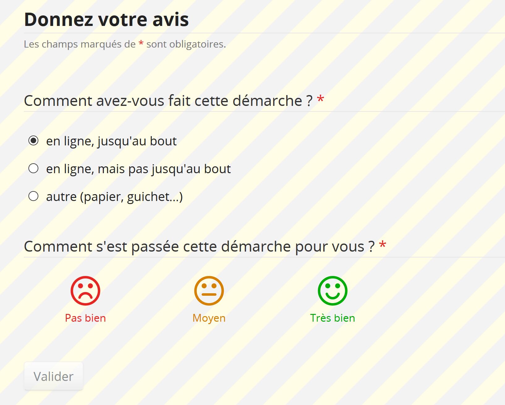 Pour soi-disant évaluer la qualité des formalités administratives, le gouvernement a lancé le site https://nosdemarches.gouv.fr/